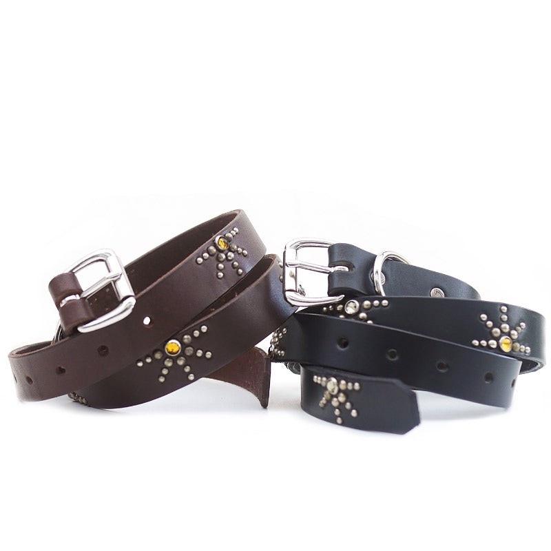 Sunray Narrow Belt / Nikkel Studs / Black Leather